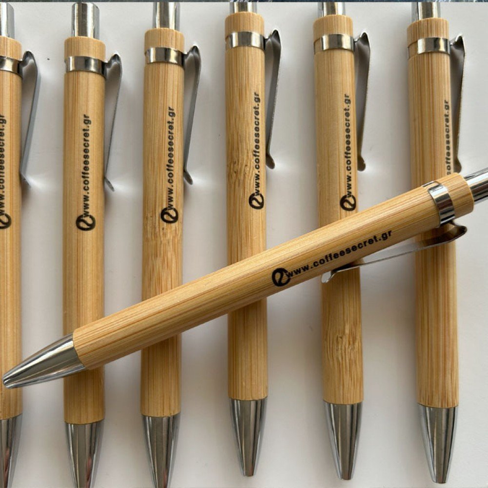 × Οικολογικό Στυλό Bamboo με Shiny Chrome Fitting & Εκτύπωση